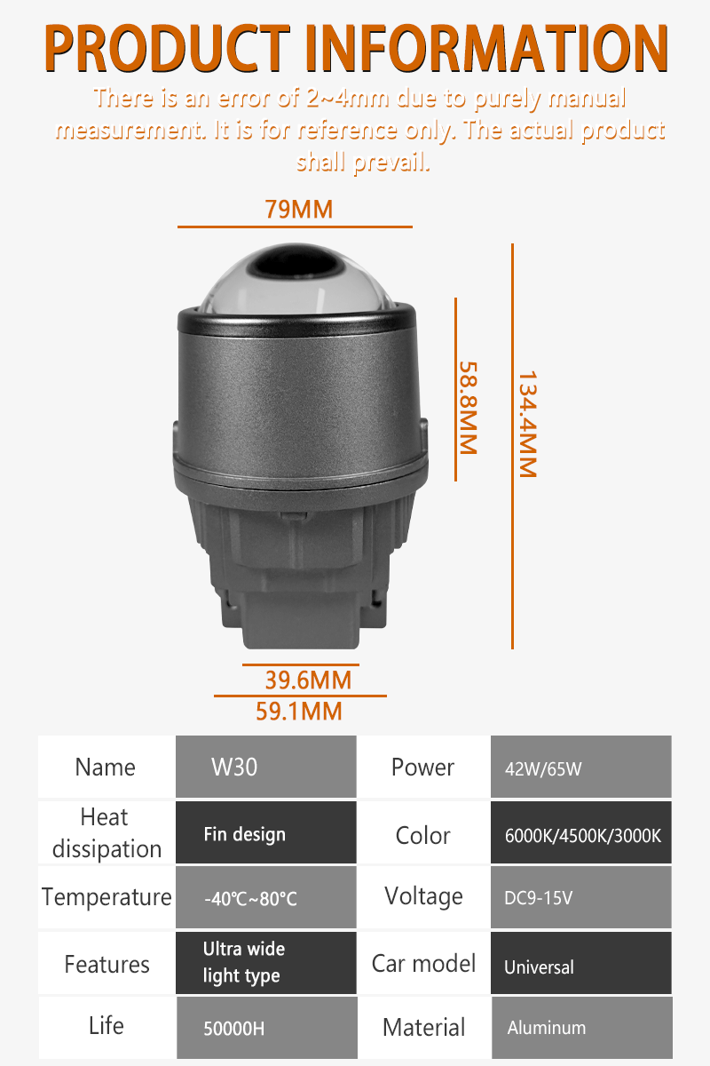 Fog Light W30 Three Colors Led Driving Auxiliary Light 2 Inch 3Inch