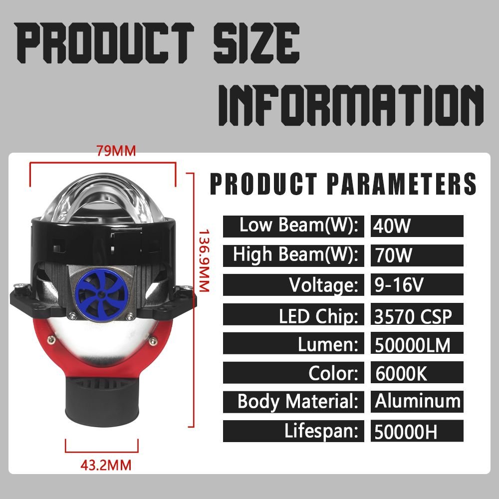 Led Headlights Wholesale 3 inch h4 bi led projector lens High Low Beam Auto Headlamp-W60