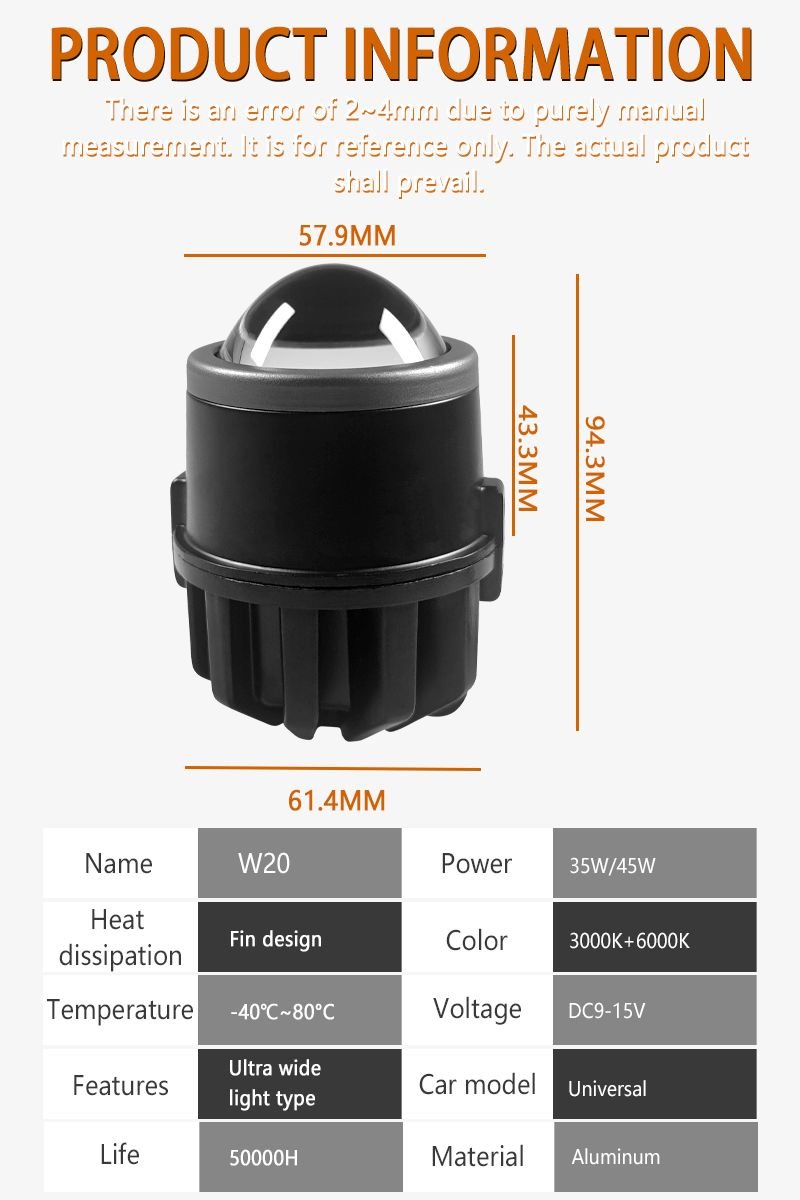 Universal Fog Light 2 Inch Led Driving Light White Amber fog lamp projector for car bike motorcycle-W20